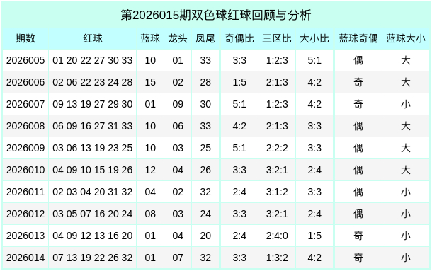 当期红球号码大小比为4:2,三区比为1:3:2,奇偶比为3:3。